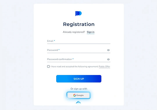 Գրանցումը հեշտ է։ Դուք կարող եք գրանցվել՝ օգտագործելով ձեր էլ. հասցեն կամ ձեր Google հաշիվը։